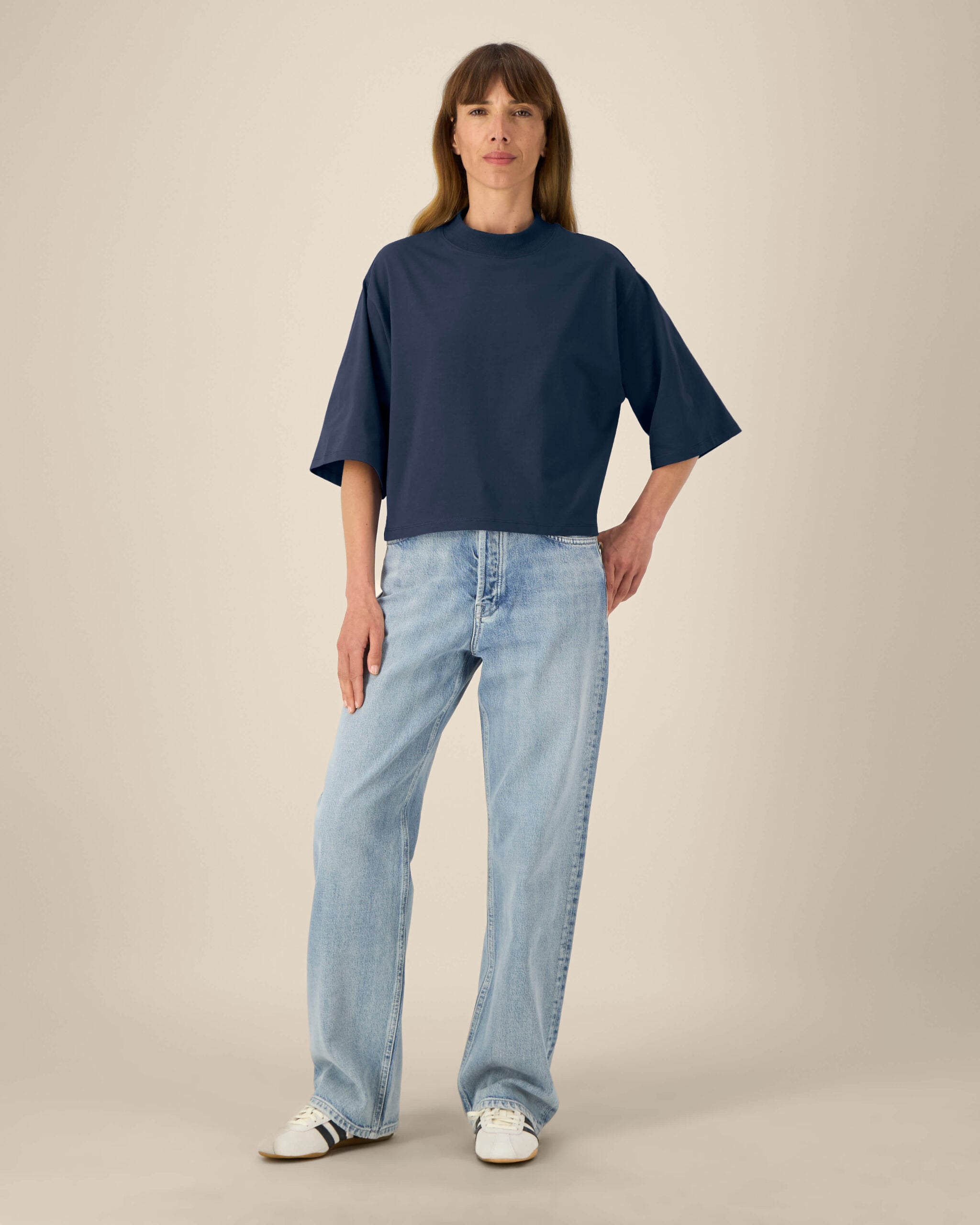 Raya è la t-shirt senza stampa, corta con maniche lunghe.